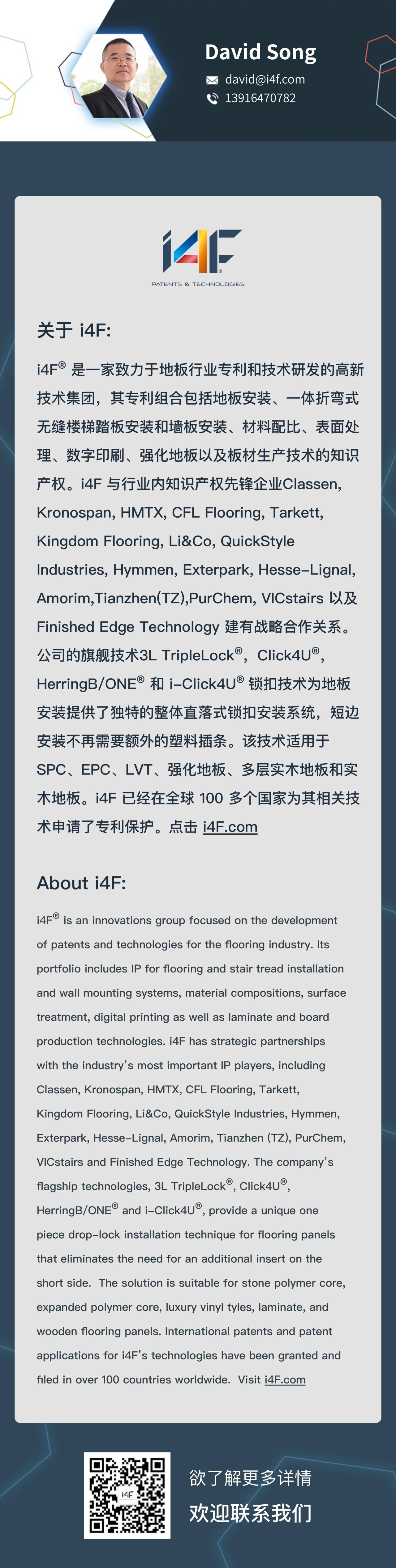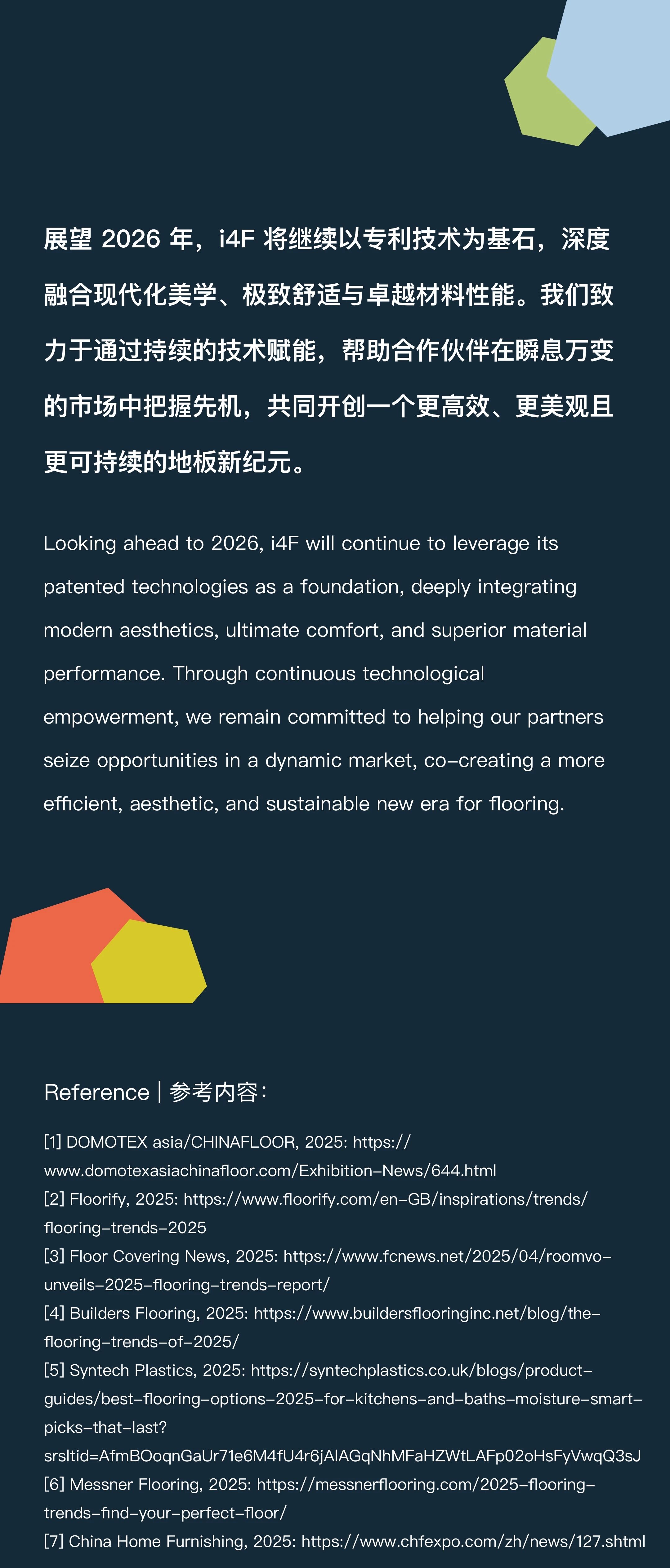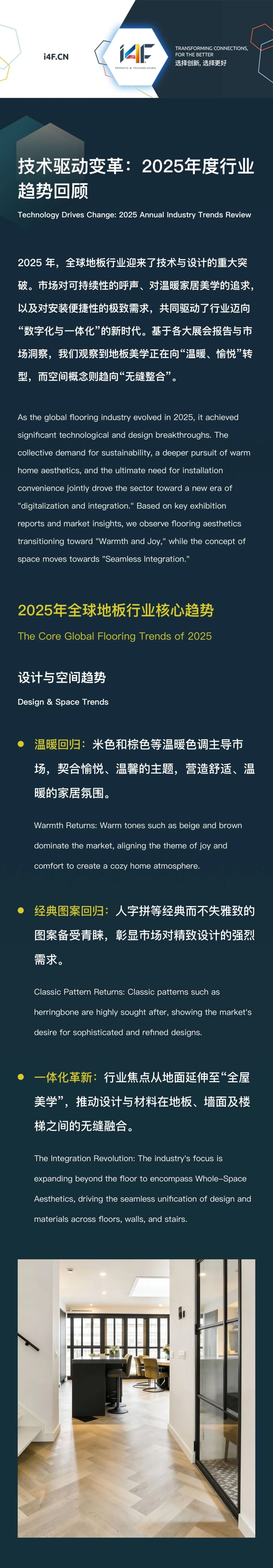 查看所有新闻 2026年 1月 7日 技术驱动变革:2025年度行业趋势回顾 最新动态 2026年 1月 7日 技术驱动变革:2025年度行业趋势回顾 阅读文章 2026年 1月 7日 i4F祝您节日快乐 阅读文章 2025年 12月 12日 i4F收购Beaulieu International Group的硬质芯材地板/LVT专利组合 阅读文章 查看所有新闻