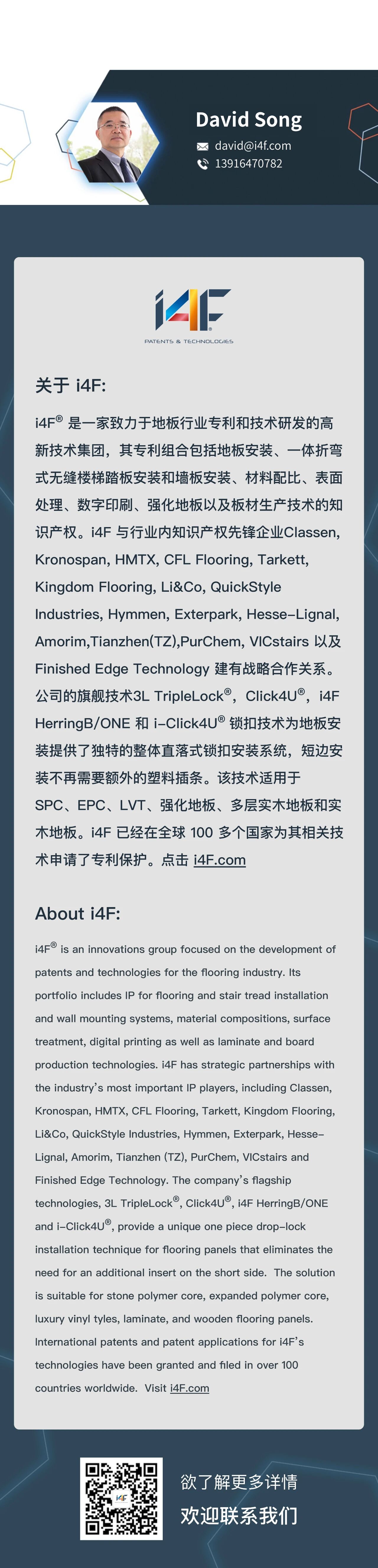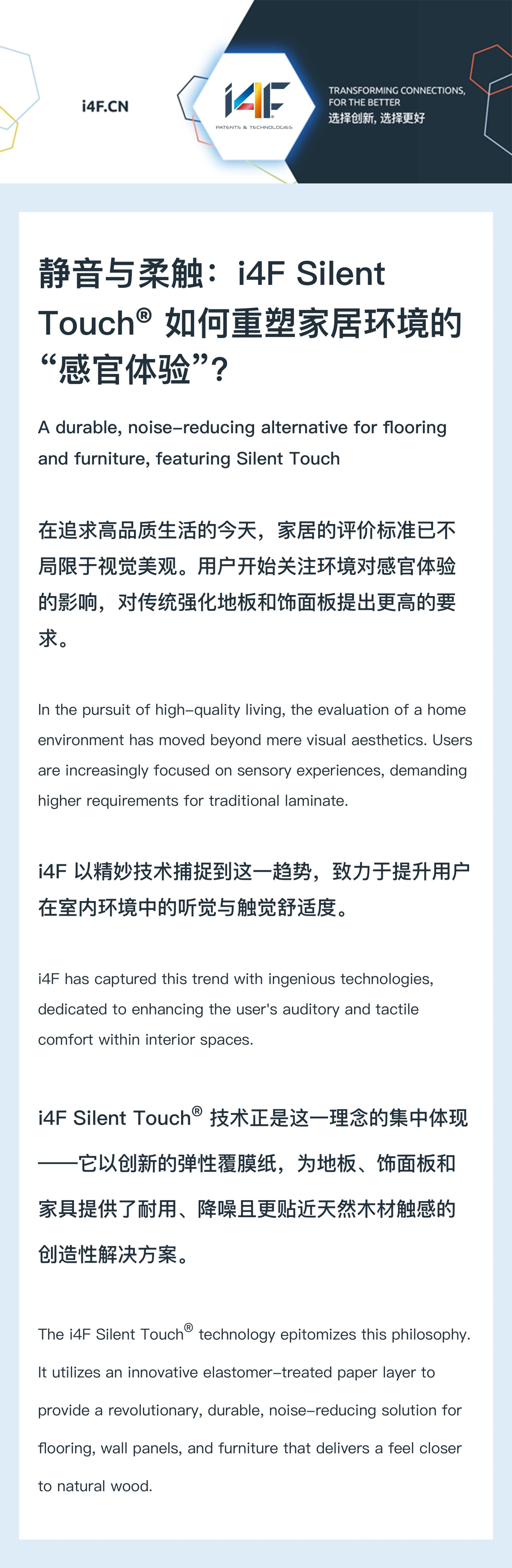 查看所有新闻 2025年 12月 12日 静音与柔触:i4F Silent Touch® 如何重塑家居环境的“感官体验”? 最新动态 2025年 12月 12日 i4F收购Beaulieu International Group的硬质芯材地板/LVT专利组合 阅读文章 2025年 12月 12日 持续远见,凝聚力量:i4F 总部年度战略部署,引领创新下一程 阅读文章 2025年 12月 12日 静音与柔触:i4F Silent Touch® 如何重塑家居环境的“感官体验”? 阅读文章 查看所有新闻
